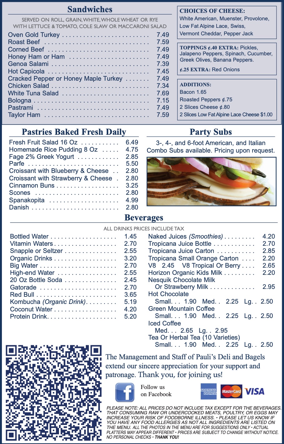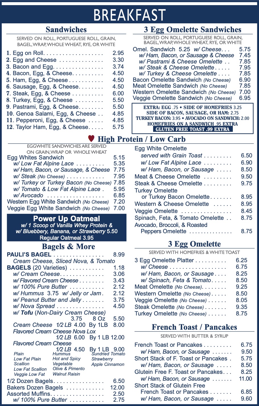 Serving breakfast and lunch, Pauli's Deli and Bagels has something for every taste — spreads, seasonal soups, salads, sandwich specialties and more! Our low-carb, high-protein sandwiches and diet dishes feature Alpine Lace low-fat Swiss Cheese and are perfect for anyone who's bulking up or just watching their waistline.